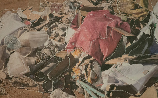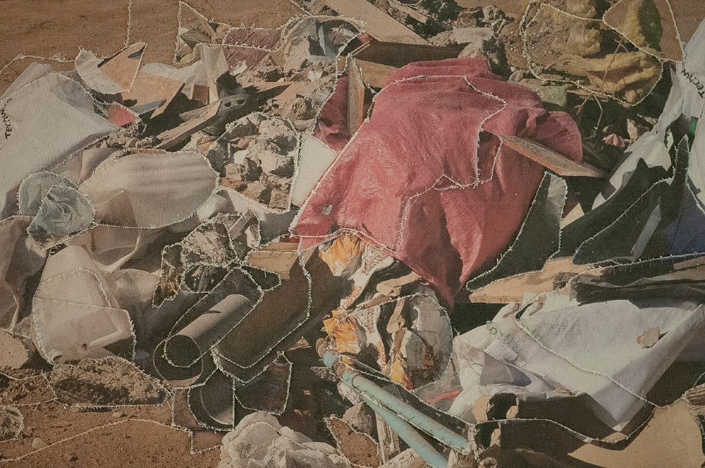 Fotografías impresas digitalmente sobre tela, recorte y costura manual.