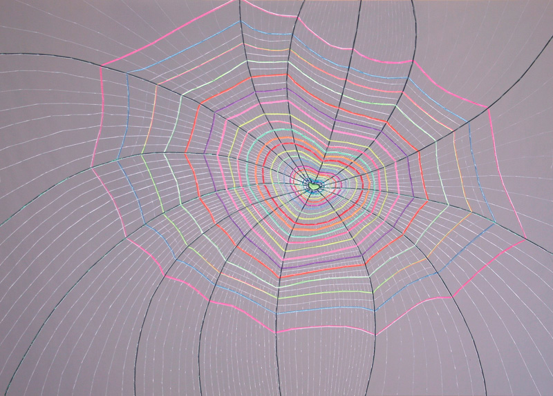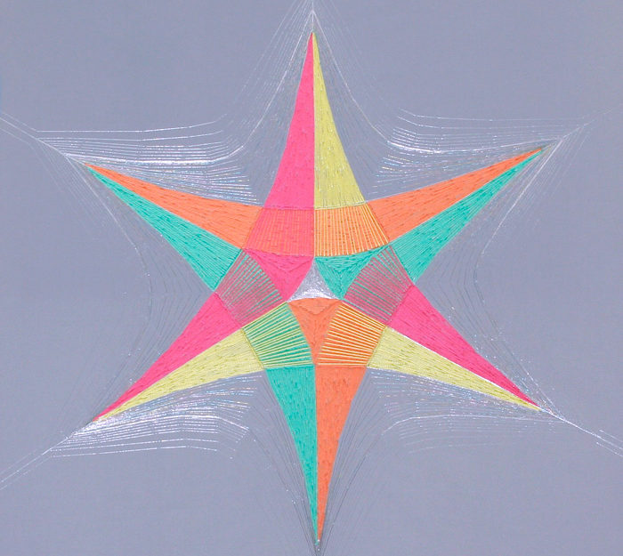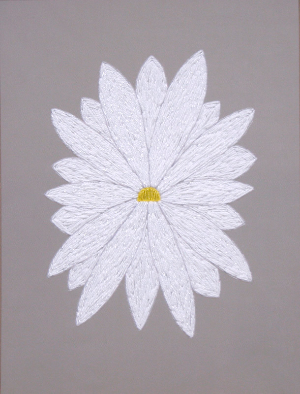 Este proyecto de bordados se desprende de mi ejercicio escultórico anterior por la investigación en el uso de los materiales y su aplicación en el espacio bidimensional. Aparece el ejercicio de bordar como contra respuesta al peso material bruto de la escultura en hormigón que trabajo. En este nuevo ejercicio de construir obra comunico a través de lo frágil y sutil de los materiales escogidos: la tela de tul y los hilos de bordar.