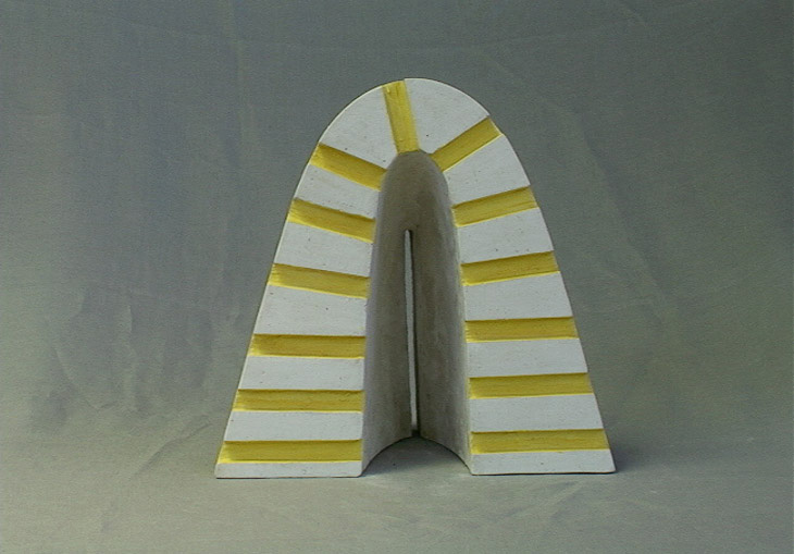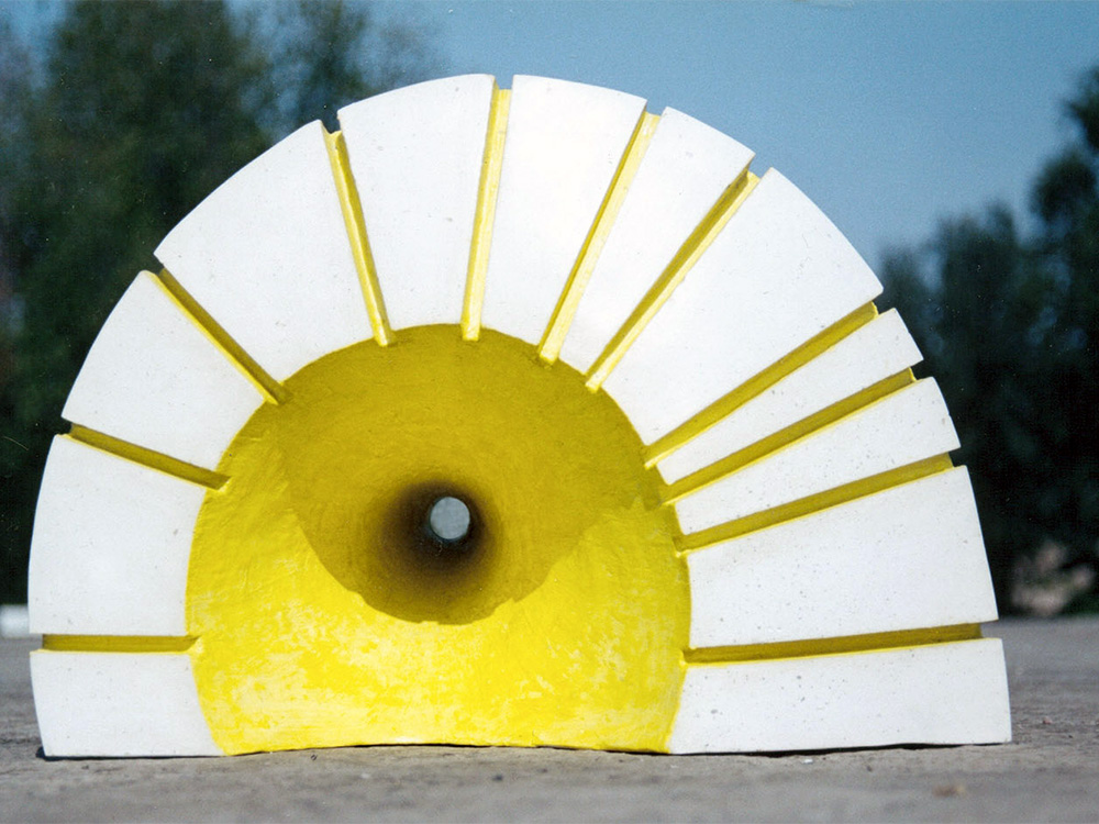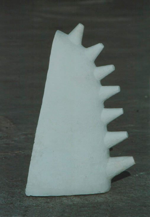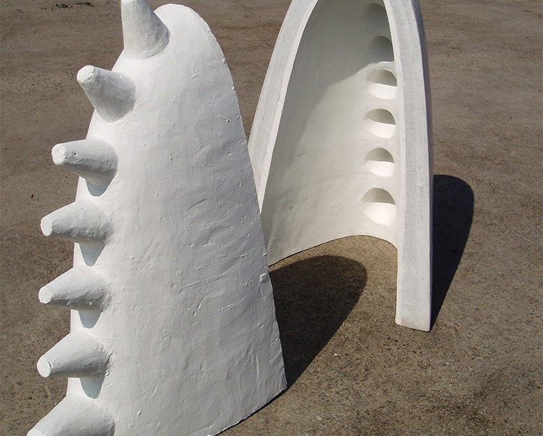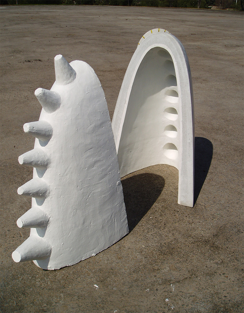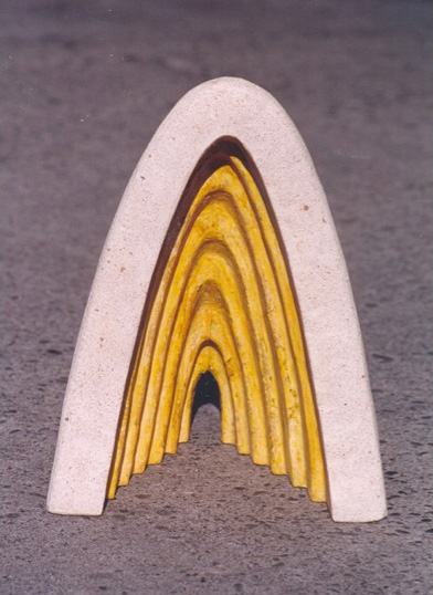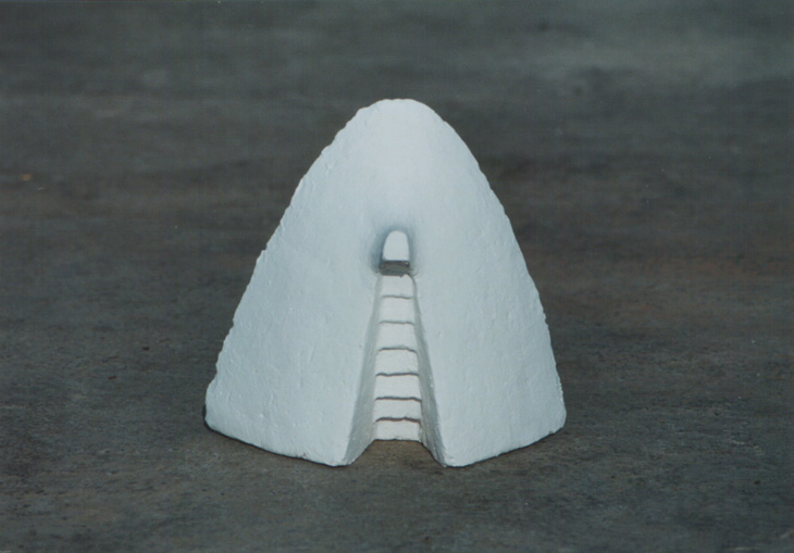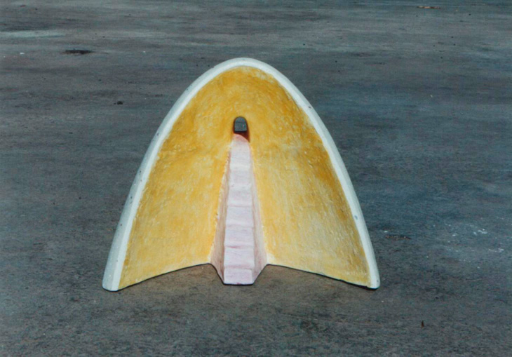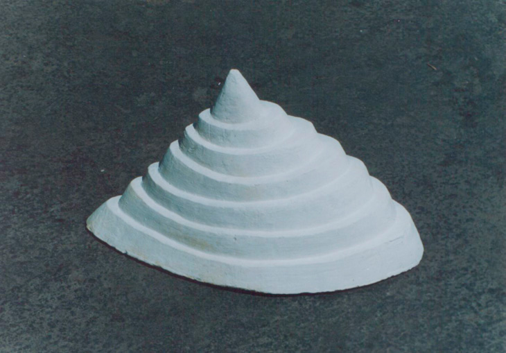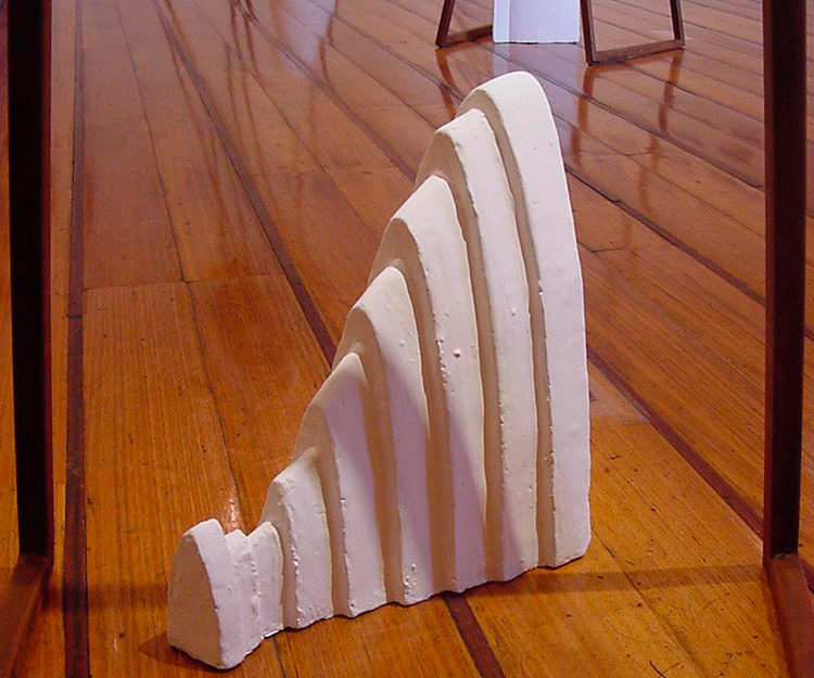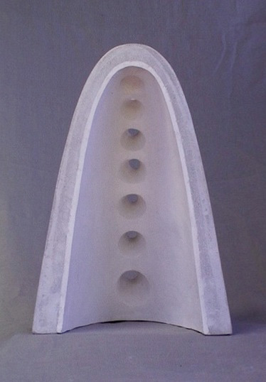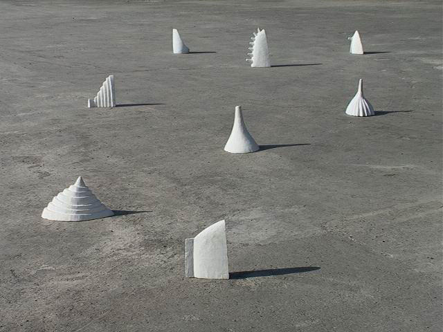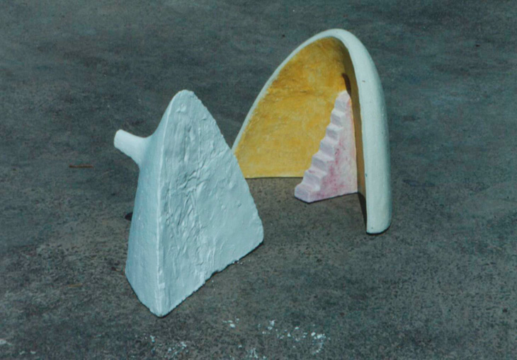 En “Grutas y Vírgenes” mi propuesta escultórica está dirigida a profundizar en los orígenes del espacio tridimensional. Este espacio primero lo defino como un cuerpo ovoide. Este “huevo” que representa mi cosmos desprende un molde o límite, y una forma interior. Es así como las grutas remiten  a ese cuerpo al ser fragmentos y vestigios de esa cáscara exterior-límite contenedor. Las Vírgenes en cambio, se desprenden desde el interior de ese molde, son su matriz interna.