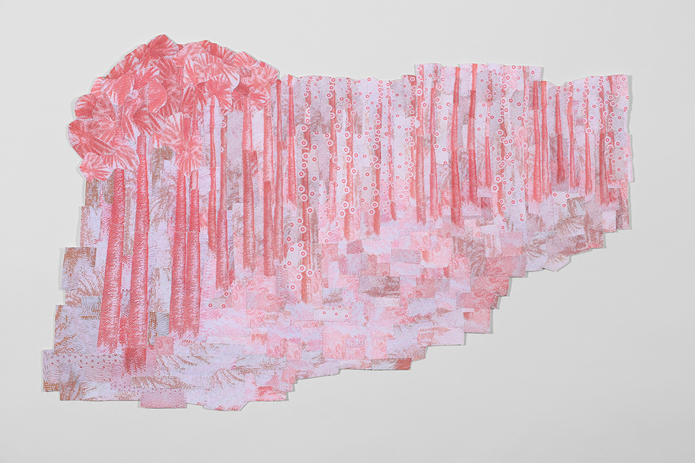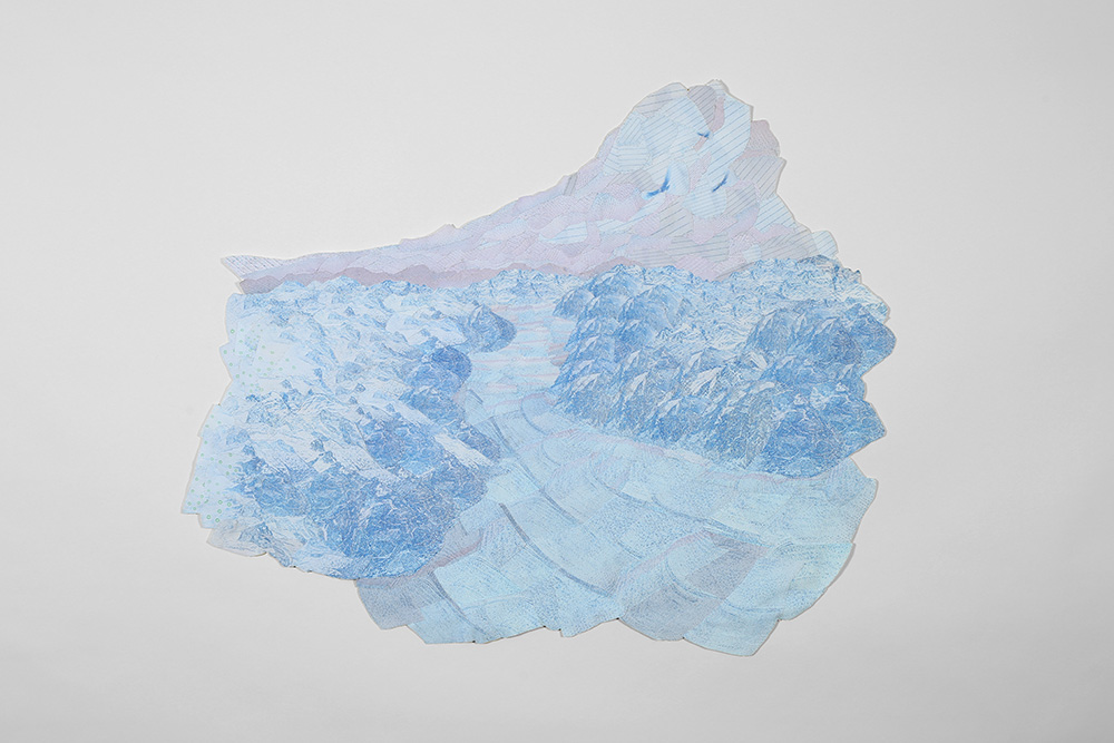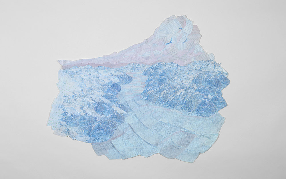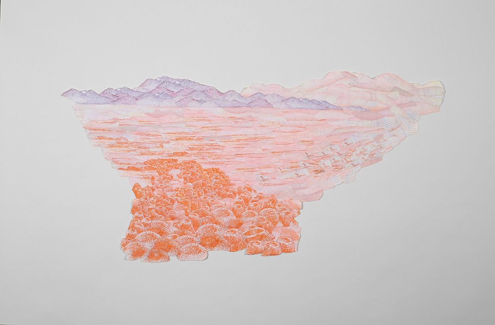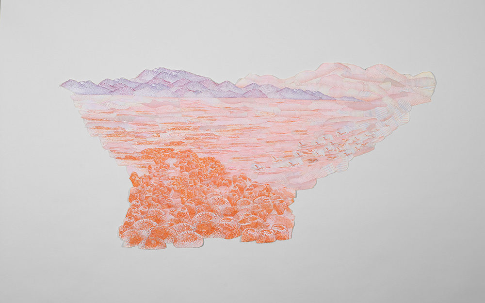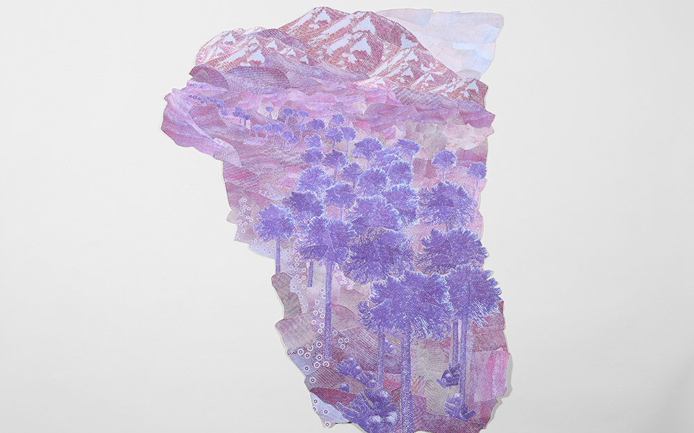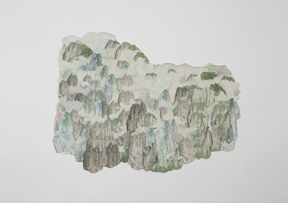 La serie de obras bidimensionales que componen esta muestra abordan la construcción de paisajes imaginarios tomando como punto de referencia la visualidad de los billetes nacionales que actualmente están en circulación: tanto el paisaje en sus reversos como la gráfica de sus dígitos. A partir de este referente visual se articula la problemática de este trabajo en torno a la relación entre paisaje-dinero e identidad.