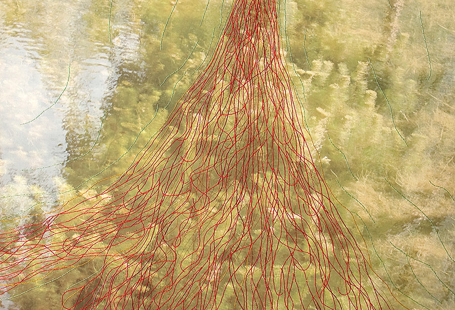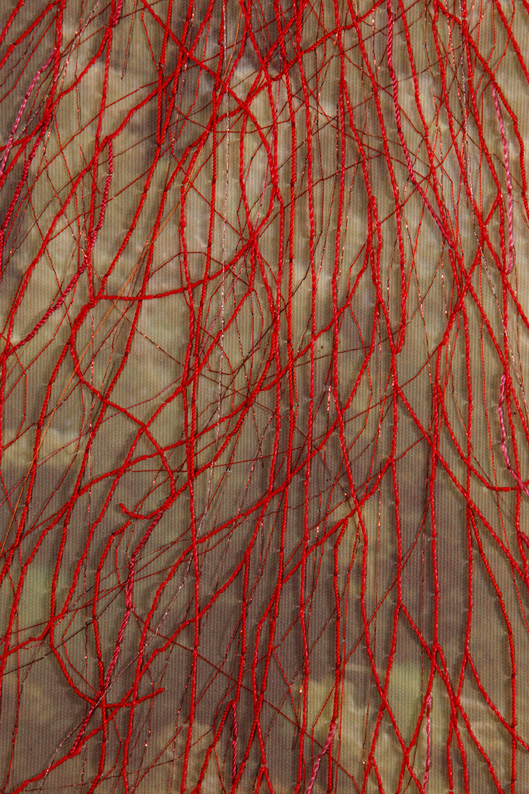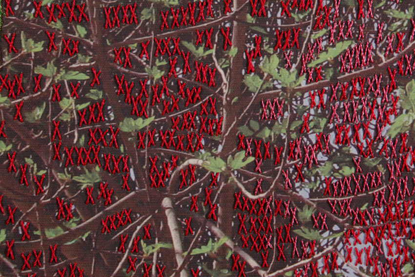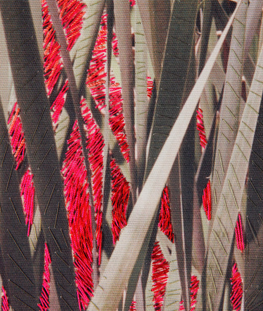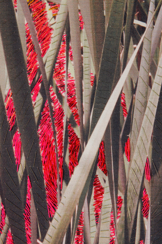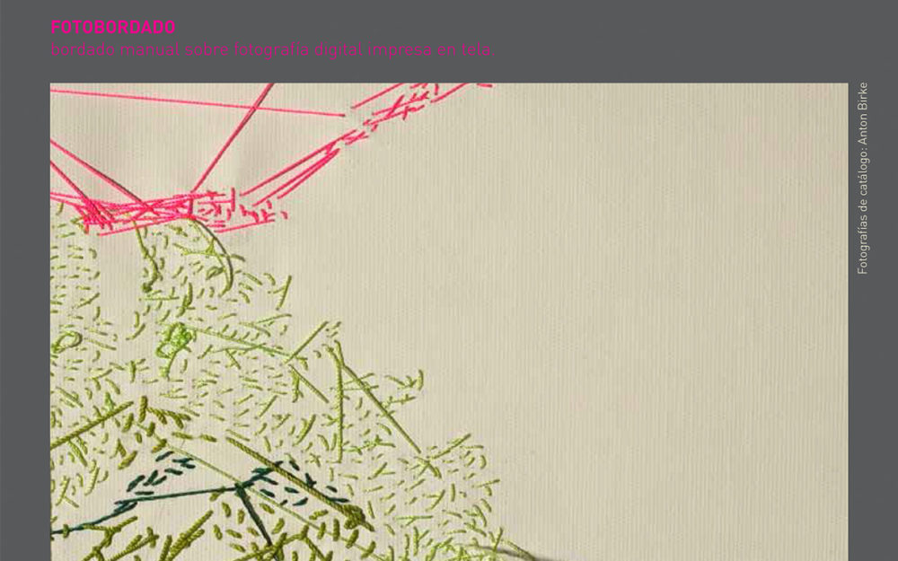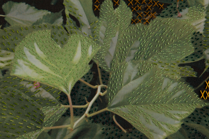 Esta serie de fotografías nos introducen en la Naturaleza. Organismos vegetales que están ahí son demarcados o acentuados por la manualidad del bordado a modo de una intervención leve o tenue sobre la superficie de la imagen que vemos. Se podría establecer un paralelo entre el bordado y la pintura como señalizando un momento, un segmento de este ciclo.