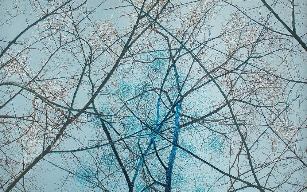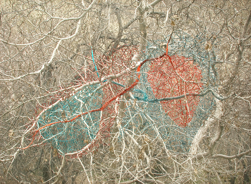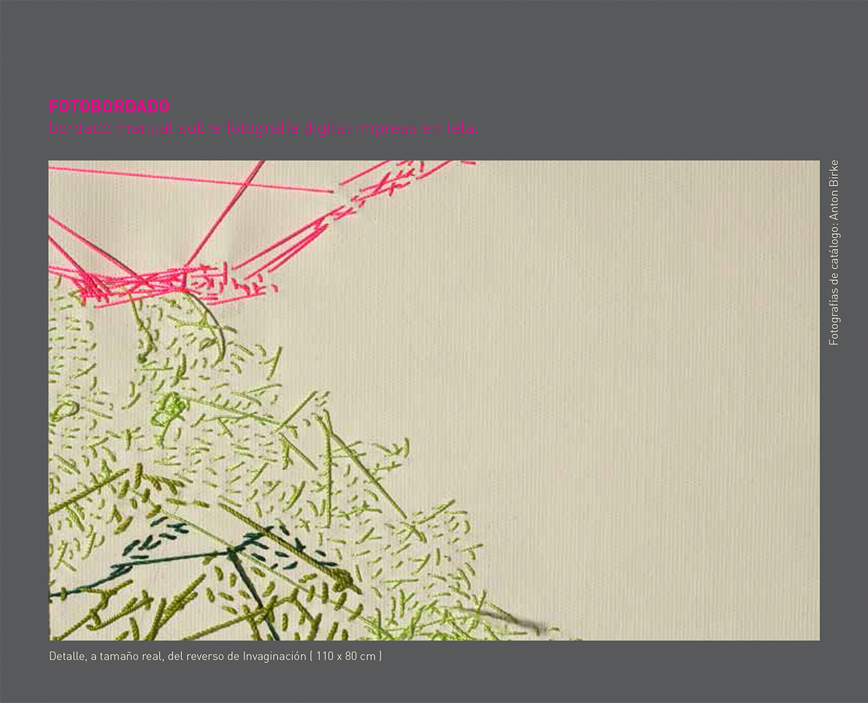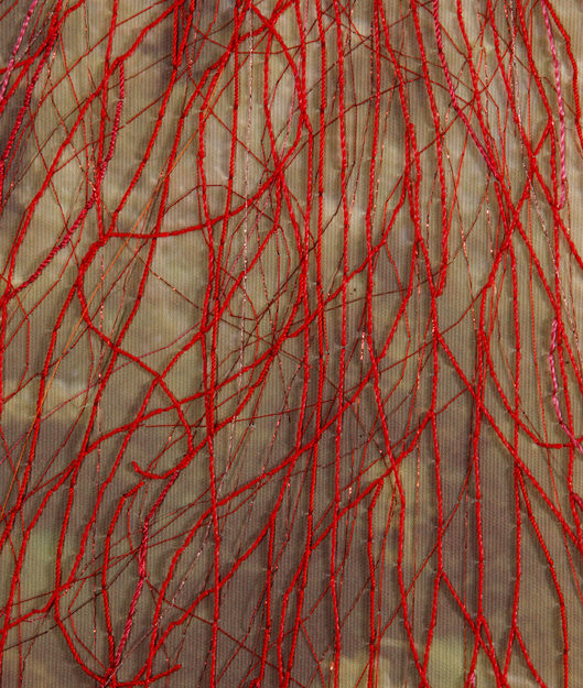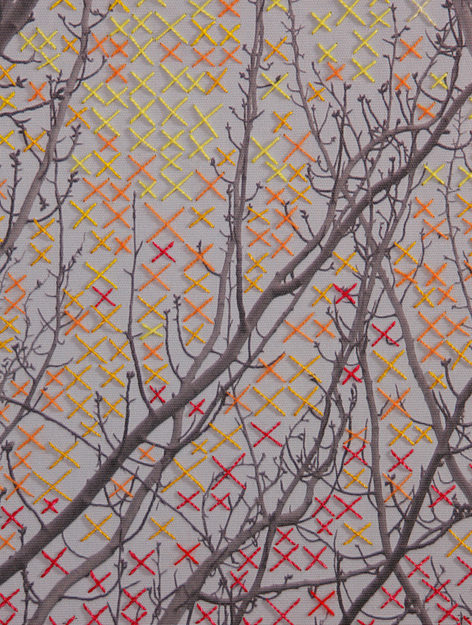 Esta serie de fotografías nos introducen en la Naturaleza. Organismos vegetales que están ahí son demarcados o acentuados por la manualidad del bordado a modo de una intervención leve o tenue sobre la superficie de la imagen que vemos. Se podría establecer un paralelo entre el bordado y la pintura como señalizando un momento, un segmento de este ciclo.